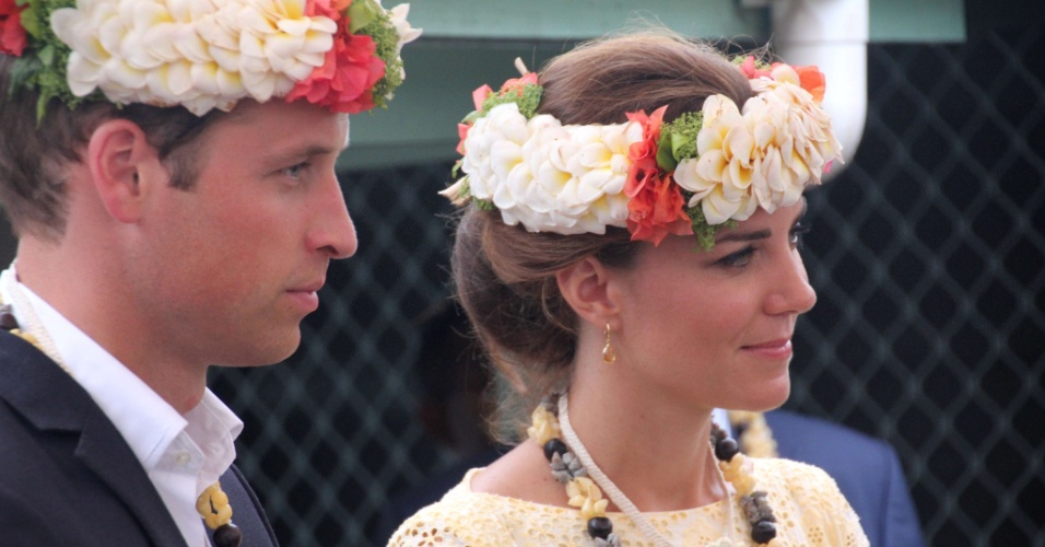 Príncipe William e duquesa Catherine são recepcionados com flores na ilha Tuvalu, na Polinésia (18/9/12)