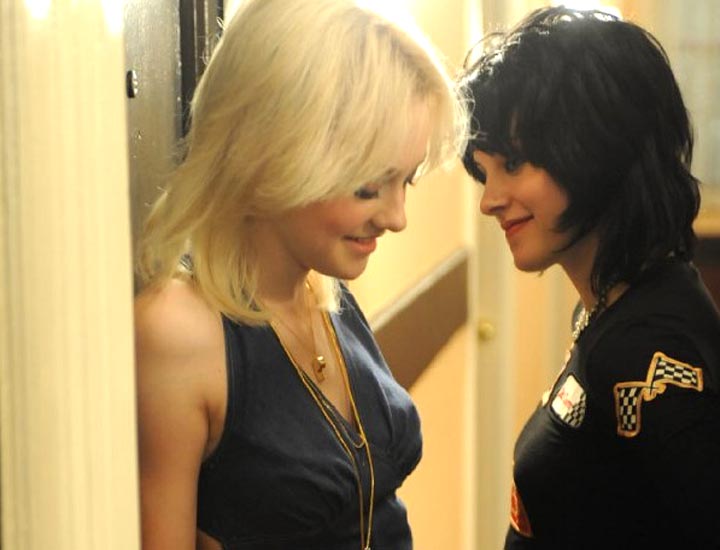 O filme ‘The Runaways’ conta a história da primeira banda de rock de sucesso formada por mulheres. As cenas são centradas nas integrantes Joan Jett (Kristen Stewart) e Cherie Currie (Dakota Fanning), que protagonizam um momento ardente, com direito a beijos e roupas espalhadas pelo chão.
